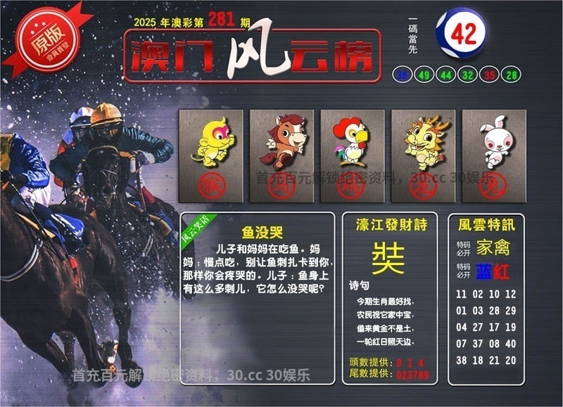 280期:两波⑧码☯开:鼠42中 【红波:08.13.34.46】 【蓝波:10.20.25.37】 |